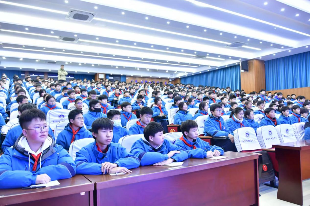 本次讲座由阜阳市城南中学党支部书记、校长吴万涛以及思政中心主任程冲冲担任主讲嘉宾,七八年级的500多名师生参与活动。